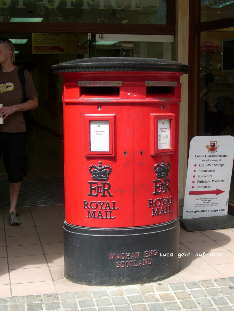 Die nächste Stadt auf unserer Route durchs Mittlelmeer, war Gibraltar. Vom Kreuzfahrthafen sind wir erst einmal hoch in die Stadt gefahren, dies kann man am besten mit der Gondel. Oben angekommen, hatten wir einen atemberaubenden Blick über Gibraltar und die Bucht davor. In der Bucht lagen an dem Tag auch viele Frachter aus aller Welt. Nach dem Genießen des Ausblicks, sind wir etwas durch die Stadt geschlendert. Hier und da konnten wir etwas entdecken, wie zum Beispiel die rot-schwarzen Briefkästen für Royale Post. Warum Royale Post? Naja Gibraltar ist ein britisches Überseegebiet.