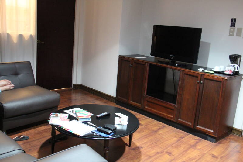 Am späten Nachmittag kamen wir endlich in unserem Hotel Balmoral in San Jose an. Dies liegt ziemlich zentral bzw. mitten in der Stadt, was auch hieß, dass wir von hier aus sehr gut und schnell die Stadt erkunden konnten. Da es mittlerweile schon dunkel in Costa Rica war, sind wir noch etwas durch die beleuchteten Straßen spaziert. Nachdem wir uns ein bisschen in den Gassen, um das Hotel herum, umgeschaut haben, sind wir noch zum Abendessen in ein Restaurant gegangen. Naja, es war wohl zu diesem Zeitpunkt Fußball, also kam dem Anschein nach ganz San Jose in das Restaurant zum Mitfiebern.